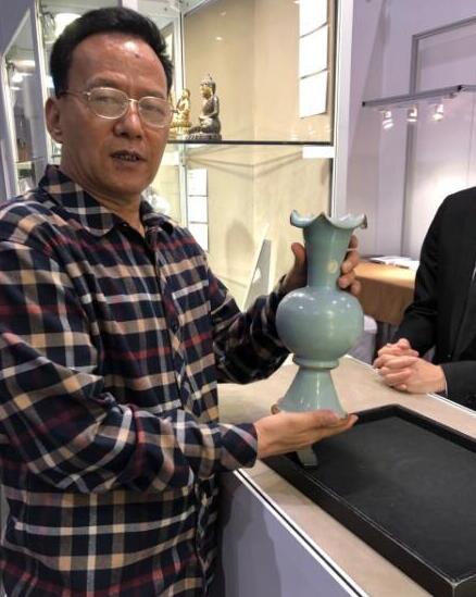 杨铁轩先生在2019香港苏富比春季拍卖会上鉴赏钧瓷花盆